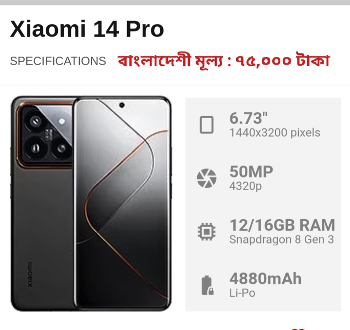 Filename: xiaomi 14 pro ultra species camera battery Snapdragon 8 Gen 3 (4 nm) gsmarena price in bangladesh 75,000 tk