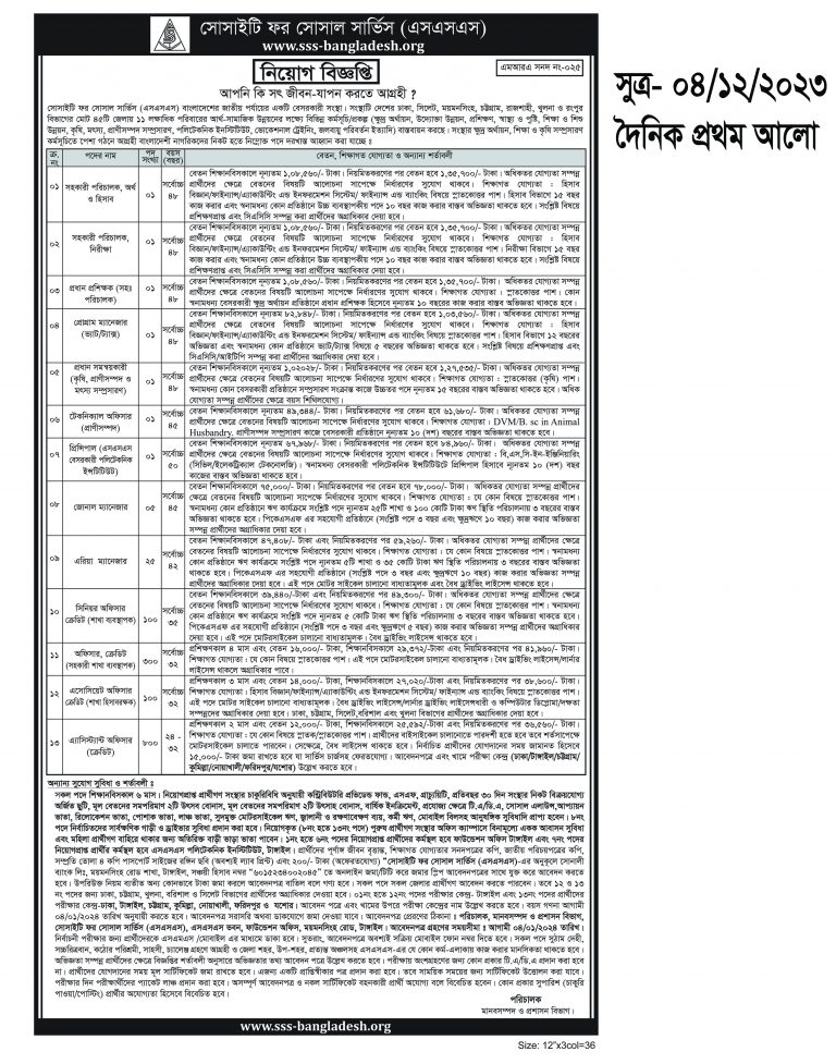 Filename: sss ( এসএসএস এনজিও ) ngo jobs circular 2023 prothom alo near dhaka jessore khulna www.sss-bangladesh.org